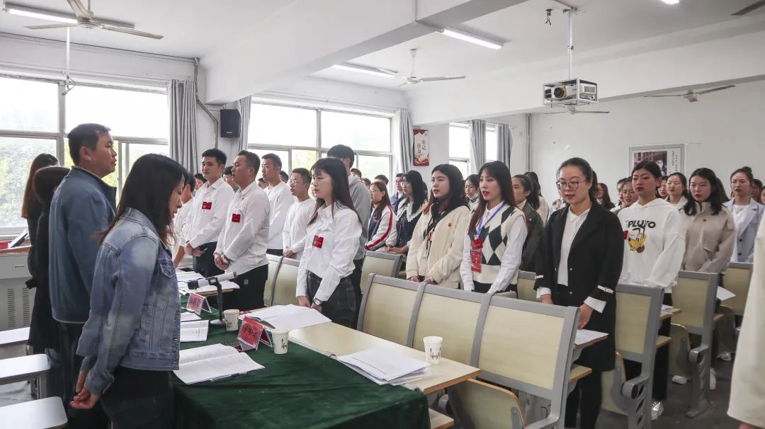 大会在全体师生怀着爱国之心、自豪崇敬之情,在奏唱国歌中拉开帷幕。色情网 党总支副书记、副院长杨庆实做开幕致辞,对大会的召开表示热烈的祝贺,对取得的成绩给予了充分肯定,同时也对全院学生工作提出了三点建议:一是要在坚定理想信念上下功夫。目标始于理想,动力源自信念。立业成事,都离不开明确的目标和持续的动力。二是要在增长知识见识上下功夫。希望同学们勤于学习、敏于求知、敢于创新、勇于实践,在增长知识、开拓视野的过程中主动思考,沿着求真理、悟道理、明事的方向不断前进。三是要在培养奋斗精神上下功夫。脚踏实地,知行合一,以行求知、以知促行,做到自强不息。希望同学们牢记习近平总书记的殷切期望,努力做到志存高远,珍惜时光,努力成为德智体美劳全面发展的社会主义建设者和接班人。最后,预祝本次大会圆满成功!