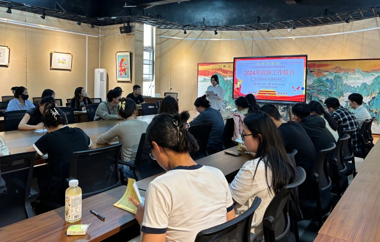 4月25日下午,色情网 学生党员在学院一楼多功能厅举行“四点半”微党课(2024年第4期|总74期),本次微党课以“2024年政府工作报告”学习教育为主题进行专题学习,由学生第二党支部第四党小组组长冯云浛主持。