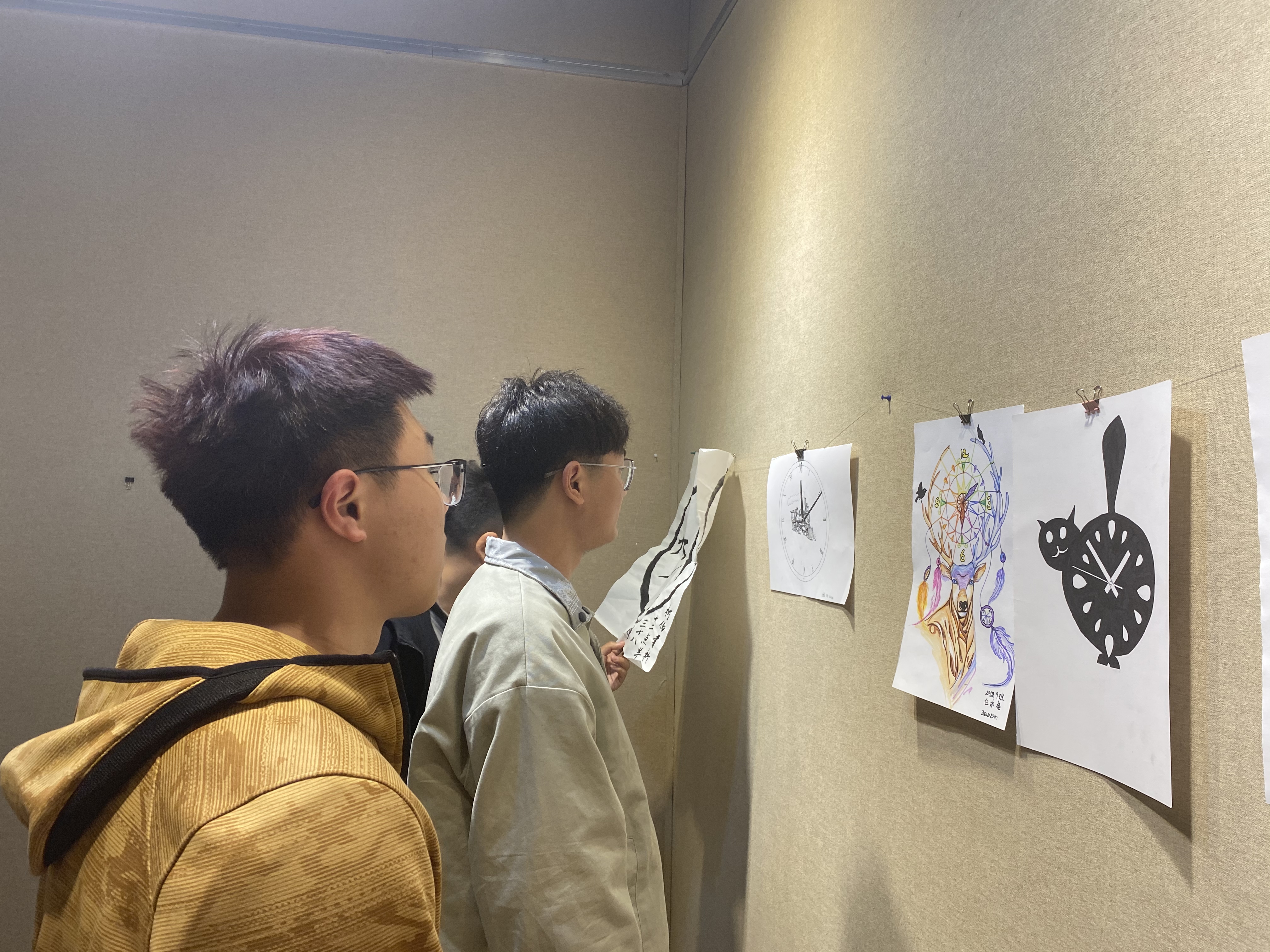 此次活动以设计时钟表面为主题,充分发挥想象力利用创意设计将知识与生活相联系,利用自己的专业能力与创意时钟相融合,创造出属于自己的那个与众不同的绚丽的艺术品。同学们充分发挥自己的想象力,在钟面上添加文化元素,设计精巧、制作精美,让平日看起来平淡沉闷的时钟令人耳目一新。每一幅作品都承载着同学们丰富的想象力和专业的知识能力,反映出同学们对生活的热爱。 现场的同学们认真观赏展出的作品,与周围的同学小声交流,并记录下自己心中喜欢的作品。志愿者们则向同学们讲解每一幅作品背后的含义及意义,让同学们对作品加深了解。观看的同学们纷纷表示,不一样的时钟设计确实给自己的生活增添几分色彩,也让自己更加的热爱生活。