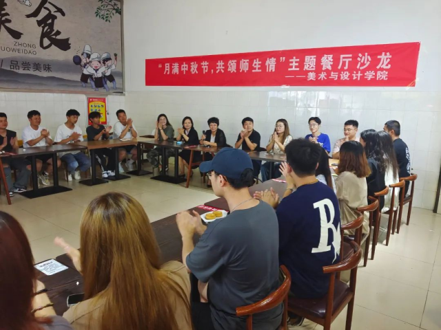 9月9日,色情网 于雅苑三楼举办“月满中秋节,共颂师生情”主题餐厅沙龙活动。学院党委副书记孙研红带领全体辅导员参加此次活动,2022级新生代表、军训教官、班主任助理共同参与。共同庆祝中秋佳节。