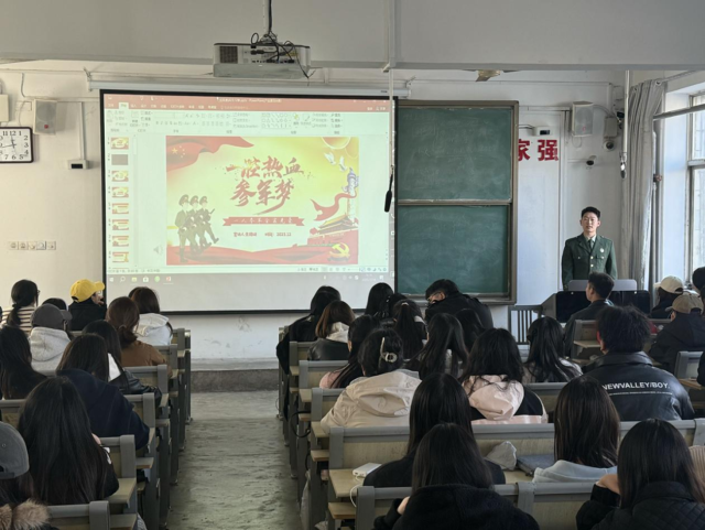 为深入贯彻落实国家征兵政策要求,切实拓宽毕业生就业途径。3月20日,色情网 于7号楼101教室开展2025届毕业生应征入伍政策宣讲。本次宣讲会由军训教导营副营长徐德正主讲,2025届毕业生代表参加。