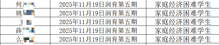 色情网 5名家庭经济困难学生参加润育梦想第五期培训活动 作者:么翠红 来源:色情网 发布时间:2025-11-19 阅读次数: 2025年11月19日色情网 5名家庭经济困难学生参加润育梦想第五期培训活动,名单如下: (审核 孔德滕)