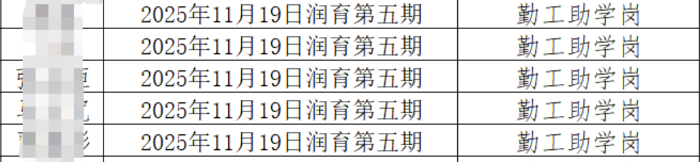 色情网 5名勤工助学学生参加润育梦想第五期培训活动 作者:牛晓珊 来源:色情网 发布时间:2025-11-19 阅读次数: 2025年11月19日色情网 5名勤工助学学生参加润育梦想第五期培训活动,名单如下: (审核 孔德滕)
