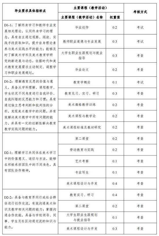 B2-3:具备扎实的美术鉴赏能力、美术创作能力和美术综合实践能力,能够胜任中学美术教学中多元化课程内容的教学和课外活动辅导任务;能够利用区域美术资源进行教学设计与课程资源开发;