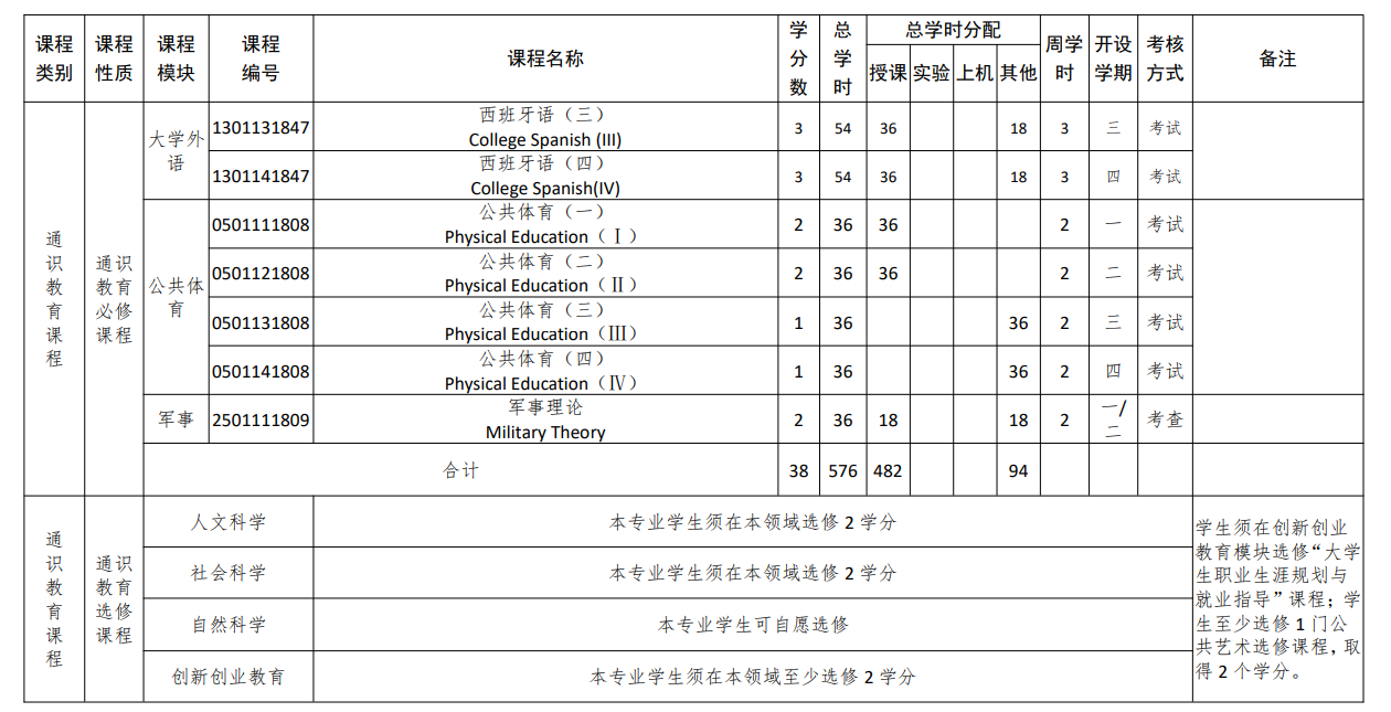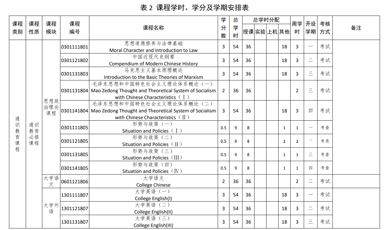 1.本专业本科生必须修满通识教育课程中的必修课程 38 学分和选修课程 6 学分,总计 44 学分。