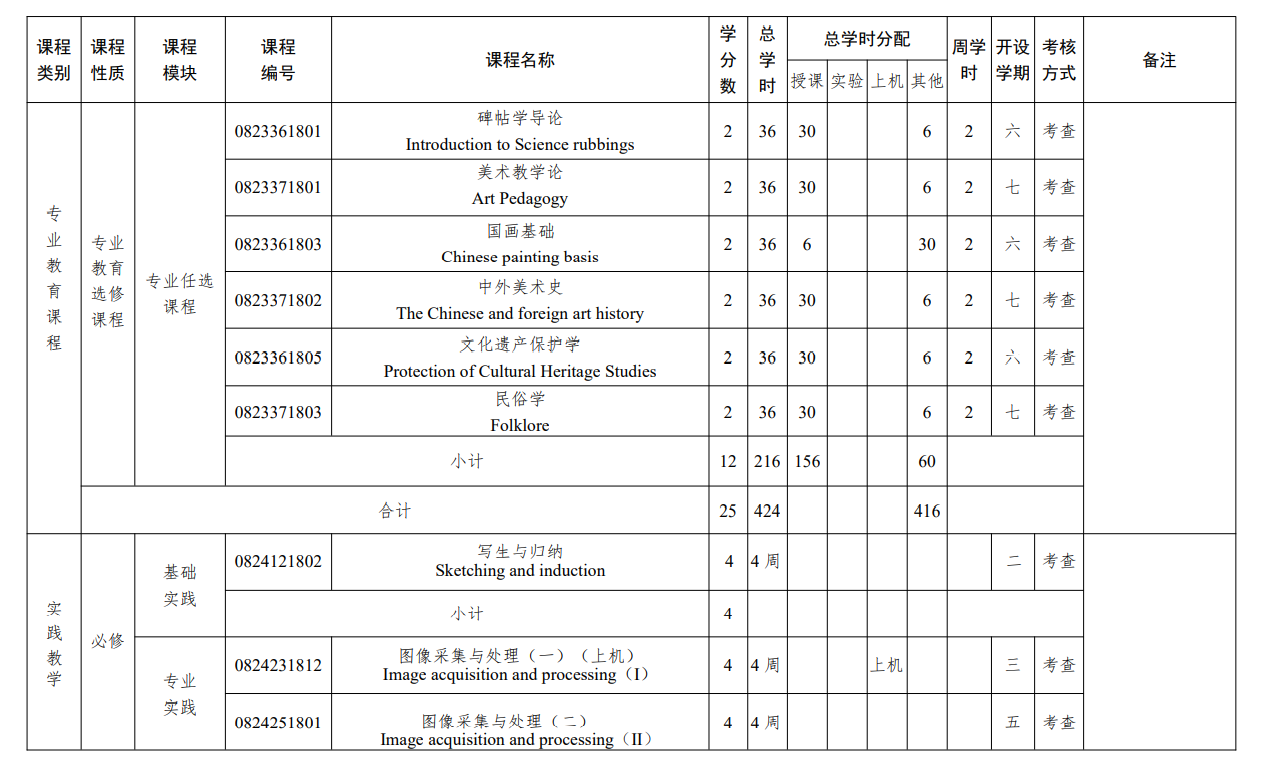 本专业标准学制为四年,学校实行学分制下的弹性学制,允许学生在 3~6 年内修满学分。计划 总学时为 2446 学时,总学分为 174 学分。学生修完规定课程,修满规定学分,准予毕业。符合学位 授予条件者,经校学位委员会审核通过,可授予艺术学学士学位。