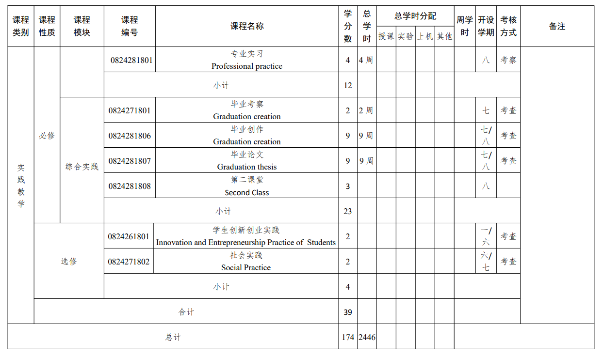 5. 本专业本科生在实践教学中必须修满 39 学分。