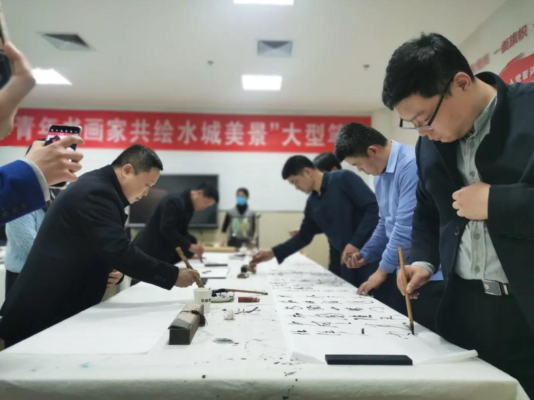 出席活动的领导和嘉宾共同启动了“墨香飘两岸,纵笔颂水城”聊台书画交流展,将开幕式推向高潮。