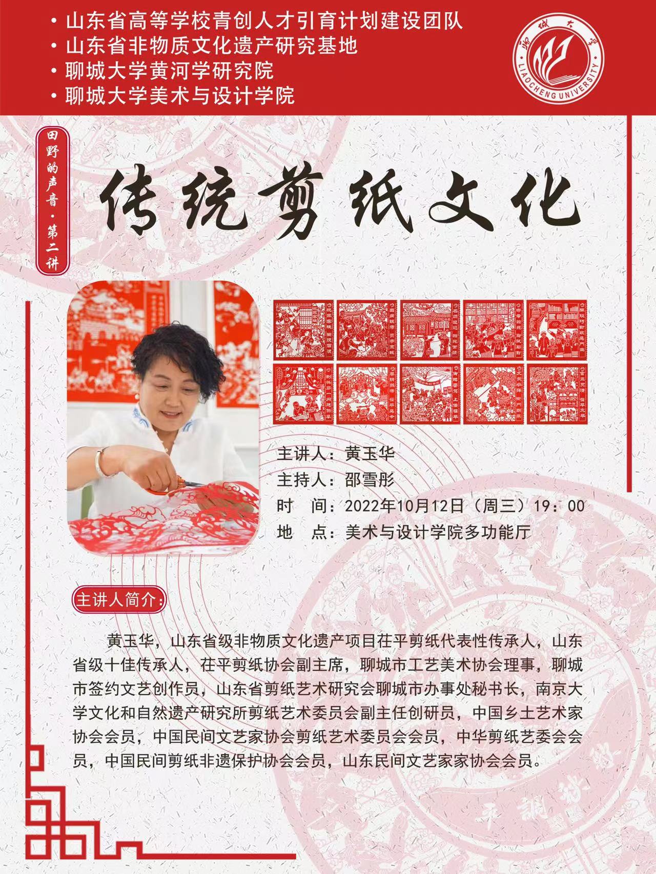 传承人是非物质文化遗产保护的核心。10月12日,在7号楼多功能厅,色情网 邀请了茌平剪纸传承人黄玉华老师为同学们作了题为《传统剪纸文化》的讲座。