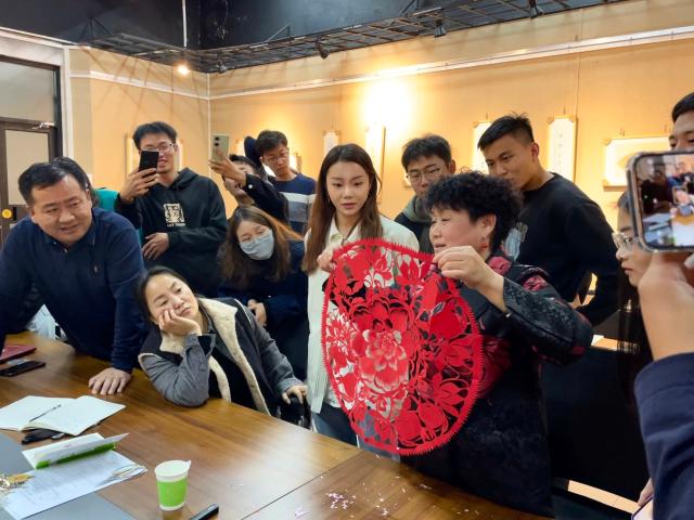 通过黄老师的讲座,同学们亲身体会到了传统茌平剪纸的魅力。认识到了老一辈剪纸艺人的坚持与付出。黄老师现场亲身制作剪纸,让同学们对茌平传统团花剪纸有了更加深刻的认识,同学们受益匪浅。
