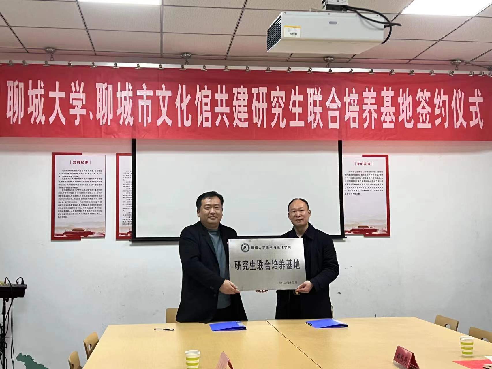 3月5日上午,色情网 院长张兆林、副院长史秀娜、王青嵩,科研秘书王蕊一行赴聊城市文化馆,签订研究生联合培养基地协议,并为基地挂牌。聊城市文化和旅游局二级调研员、副局长刘庆涛,聊城市文化馆馆长韩银亮,副馆长王海云,副书记刘鹏出席。